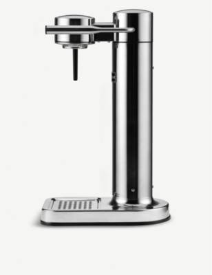 Designed in sweden this sleek and slim carbonator produces fizzy soda water via a simple lever mechanism.